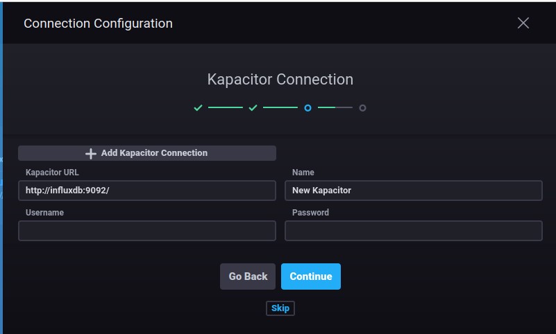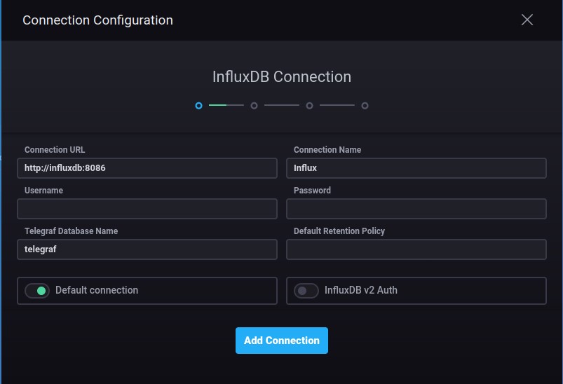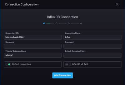 Now create a new chronograf connection under the configuration tab